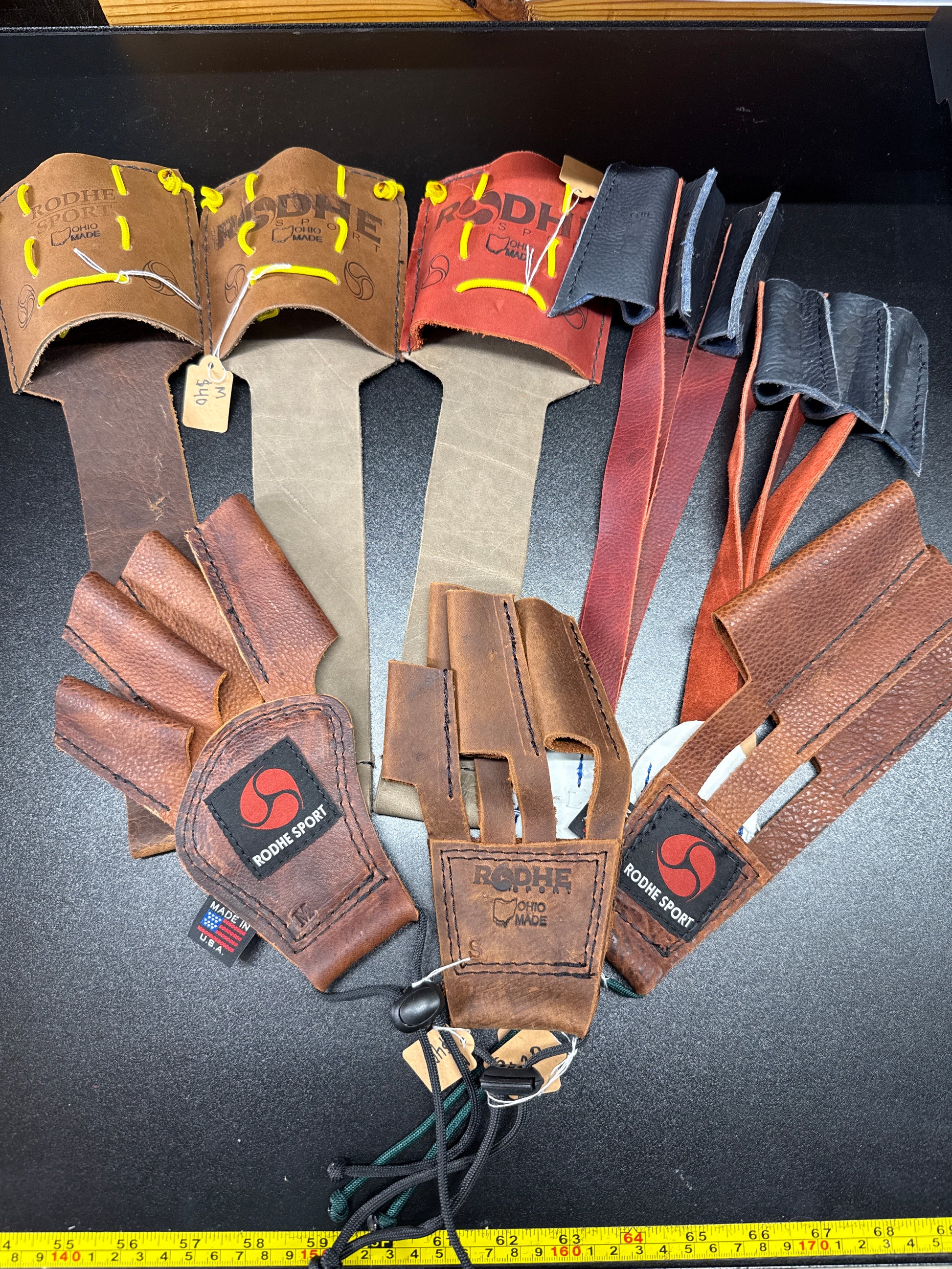 1 large, 2 medium Bear shot gloves all imperfect items. Large and small dragon fingers. Medium Phoenix hammer glove with old pommel design. 1 small Eagle hammer glove old leather and pommel design. 1 xl Eagle 3 finger hammer glove.